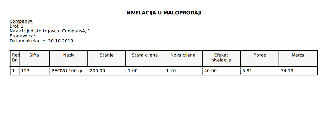 Ostalo Nivelacija Nivelacija cjena jeste promjena trenutno iskazane cjene.Nivelaciju cjena u praksi vršimo iz dva razloga: Zbog tržišnih kretanja, mjenjamo cenu na više ili niže. Zbog promjene poreskih stopa za date artikle.